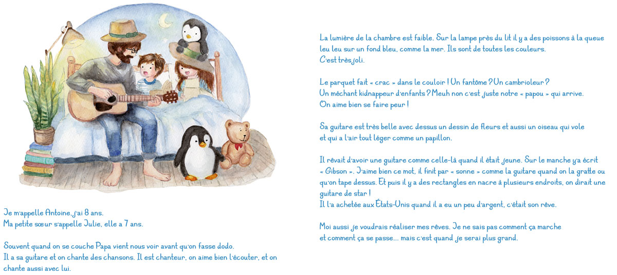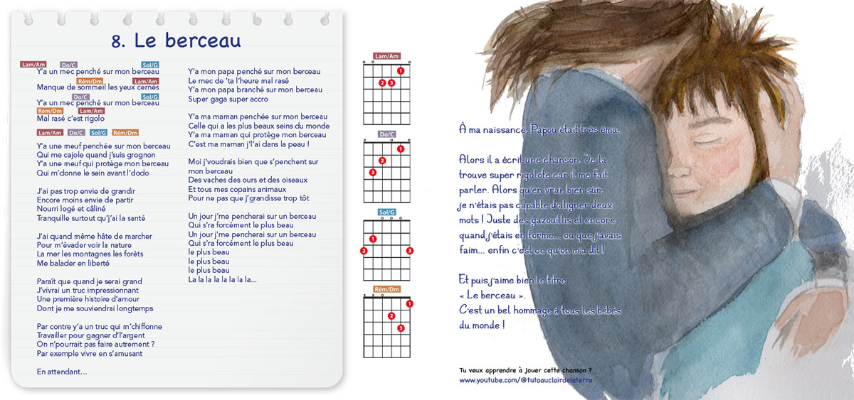 À la fois lecture, écoute musicale et initiation possible à la guitare, cet album propose aux petits et aux grands une vision lucide mais également drôle et poétique de la vie.
