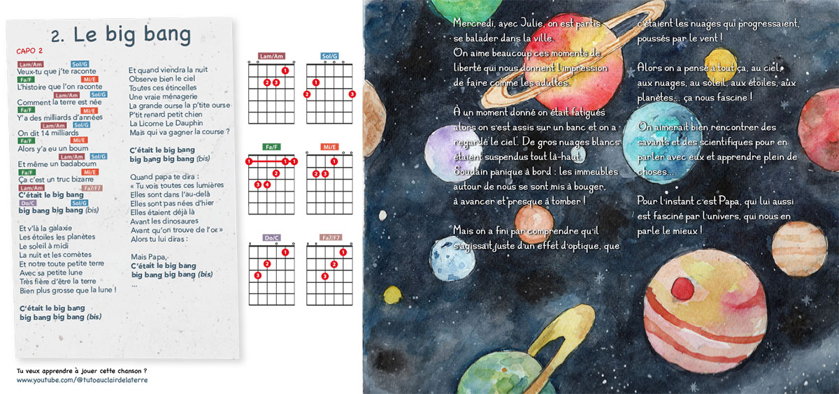 À la fois lecture, écoute musicale et initiation possible à la guitare, cet album propose aux petits et aux grands une vision lucide mais également drôle et poétique de la vie.